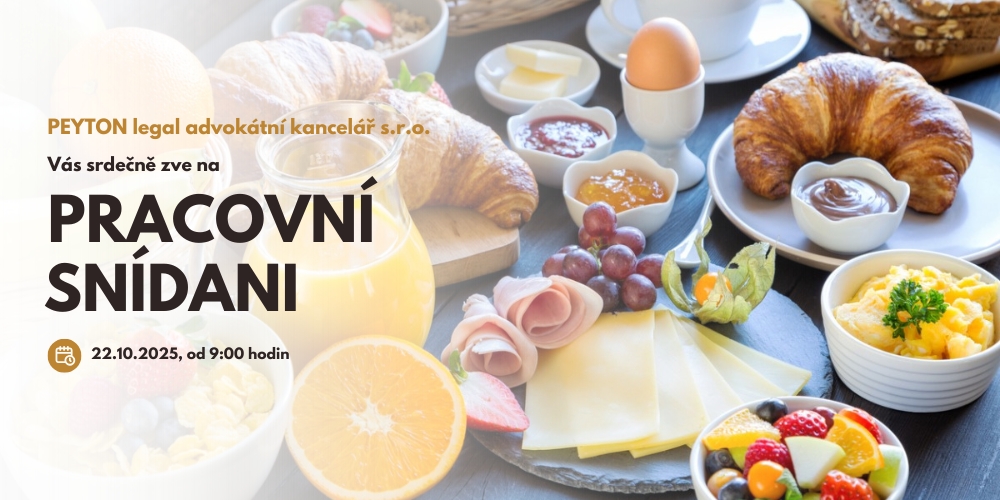 Akce se koná ve středu 22. 10. 2025 od 9:00 hodin v prostorách PEYTON legal advokátní kancelář s.r.o. – budova D, 3. patro.